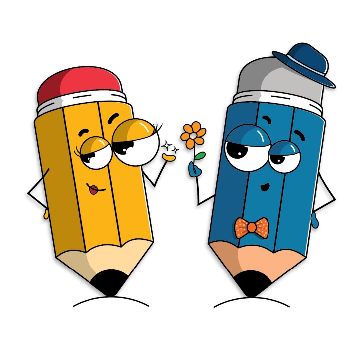 Двете версии на моливчетата изглеждат чудесно и много свежо. Идеята с цветето и аксесоарите придава характер и настроение на героите — отлично усещане за детайл и композиция! Хареса ни и как сте използвали изразителни очи и стойките на ръцете, за да създадете диалог между героите.