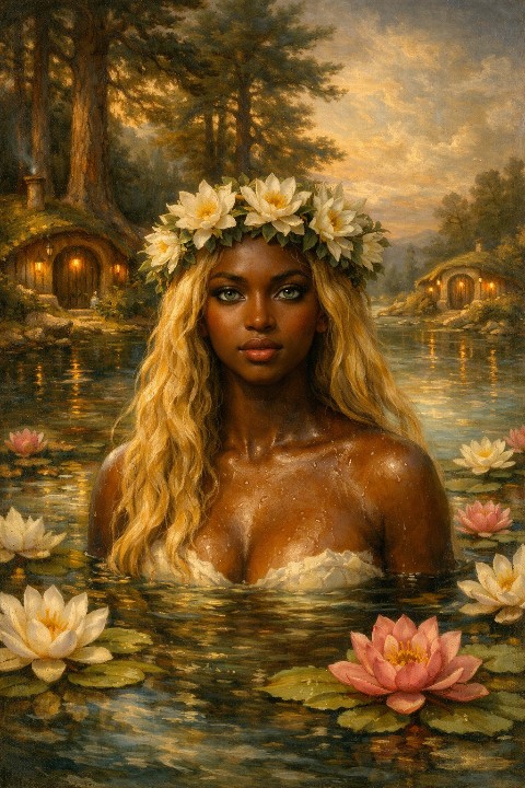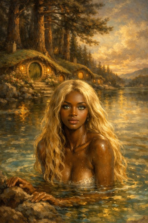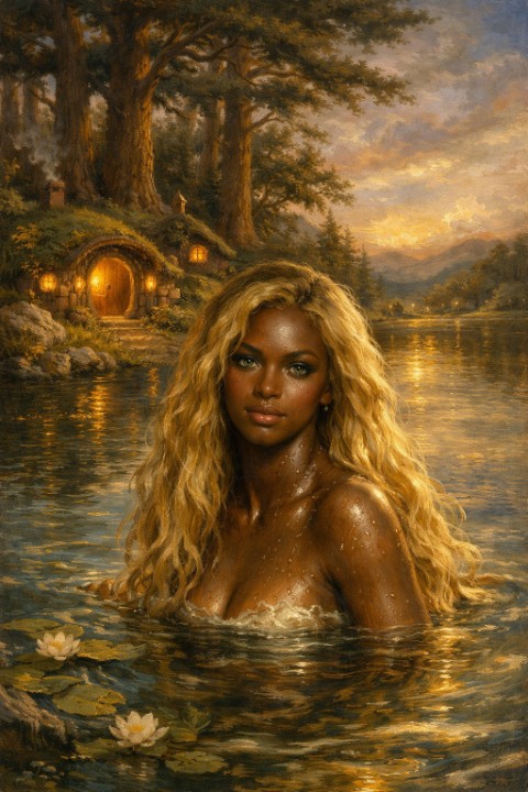 Промпт: Тъмнокожа девойка с дълги руси коси, падащи на вълни върху раменете и, с изумрудени очи, която излиза от кристално чисто езеро. До езерото има къщи на хобити под огромни борове. Стил барокова живопис, привечер, нежни цветове, златисти светлинни акценти. Предложи ми избор между два варианта на отговор. В единия не ми допадна положението на главата, а в другия - ръцете на камъните. Редактирах промпта като зададох анфас и частично потопени ръце, добавих венец от лилии на глвата. Доволна съм от реултата. Поисках да редактира изображението в стил кубизъм, но се оказа, че съм изчерпала лимита. Върна ми промпт за кубистична композиция. Поисках варианти на промпта в 10 стила. Получих за: 1. Поетичен стил; 2. Фентъзи стил, 3. Реалистичен художествен стил; 4. Кинематографичен стил; 5. Минималистичен стил; 6. Романтичен стил; 7. Детайлно описание (за AI генератор); 8. Живопис в стил барок; 9. Магически реализъм; 10. Арт концепт (игрови/илюстрация). Любопитна съм как ще ги визуализира. Искате ли да ви покажа някои от резултатите?