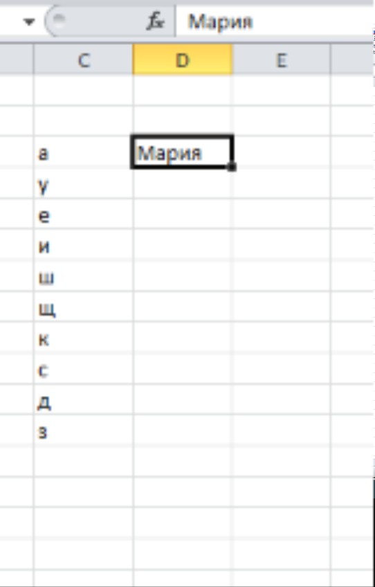 Сега сменяме написаното в клетка D3, цъкаме някъде извън диапазона и